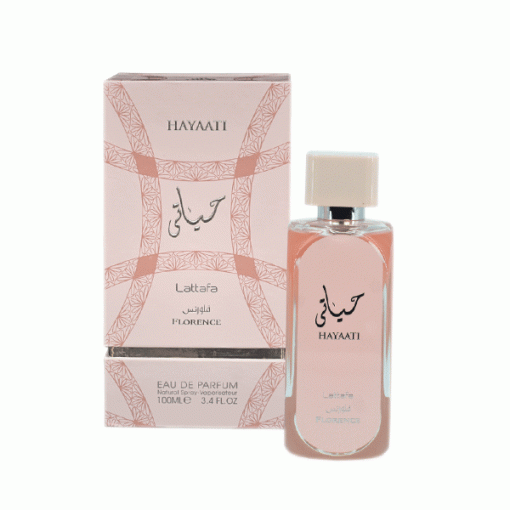 ادکلن زنانه لطافه مدل حیاتی فلورنس عطری است زنانه و جذاب با رایحه ای گرم و شیرین. ادو پرفیوم زنانه حیاتی Hayaati Florence از گروه بویایی چوبی ، گلی ، میوه ای است. عطر ادکلن حیاتی زنانه عربی یکی از بهترین و محبوب ترین و پر فروش ترین ادکلن های شرکت ارض الزعفران می باشد و از کیفیت ، پخش بو و ماندگاری متوسط برخوردار است و مناسب خانم های جوان خوش سلیقه و شیک پوش می باشد.