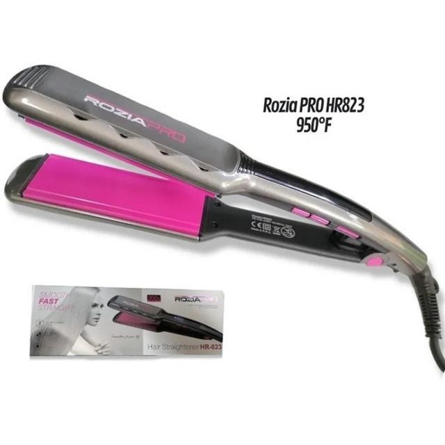 اتو مو روزیا 823 دارای صفحات از جنس سرامیک پیشرفته و تولید گرما با تکنلوژی PTC است که دارای بهترین جنس صفحه و تکولوژی تولید گرما برای انتقال گرما و نچسبیدن به مو است. یکی از ویژگیهای بارز اتو مو فاصله نداشتن صفحات از هم است که مو را بدون صاف کردن به جای نگذارد که این ویژگی را میتوان در عکس سوم دید. قابلیت تنظیم دما در بازه 450 تا 950 درجه فارنهایت را دارد.مساحت هر یک از صفحات 44 سانتیمتر مربع است که اندازه مناسب از مساحت است چون جزو صفحات پهن است مقدار مرغوبی از مو را در هر بار اتو کشیده و در وقت صرفهجویی میکند. وزن 310 گرم است که وزن عالی برای استفاده طولانی مدت دارد و از خستگی زودهنگام جلوگیری میکند. دارای صفحه نمایشLED ، سیم گردان 360 درجه برای استفاده راحتتر، حلقه اویختن، دکمه پاور ، افزایش و کاهش دما و قفل دمایی (دما قفل میشود و هنگام استفاده کم یا زیاد نمیشود در برخورد ناخواسته دست) است.صفحه شناور و قفل صفحات رادارا نیز میباشد. پک دارای اقلام دو عدد گیره سر و یک عدد شانه کربنی است.