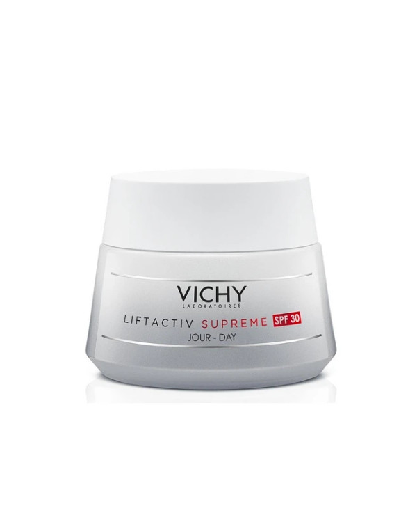 این کرم روز از سری محصولات برند ویشی (VICHY) و از لاین تخصصی ضد پیری Liftactiv Supreme این برند است که نشانه‌های کاهش کلاژن پوست را هدف قرار می‌دهد. فرمولاسیون سرشار از اسیدهیالورونیک کرم روز، نشانه‌های پیری ناشی از کمبود کلاژن را بهبود و چین‌وچروک و پیری پوست را کاهش می‌دهد. این اسیدطبیعی و جاذب رطوبت دارای وزن مولکولی بسیار پایین، با نفوذ به درون بافت پوست، آن را آبرسانی و حجیم می‌کند. به‌همین دلیل به‌صورت مداوم عمق خطوط پوست کاهش می‌یابد و چهره شما جوان و شاداب می‌شود.