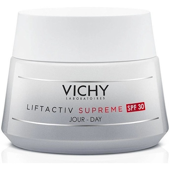 این کرم روز از سری محصولات برند ویشی (VICHY) و از لاین تخصصی ضد پیری Liftactiv Supreme این برند است که نشانههای کاهش کلاژن پوست را هدف قرار میدهد. فرمولاسیون سرشار از اسیدهیالورونیک کرم روز، نشانههای پیری ناشی از کمبود کلاژن را بهبود و چینوچروک و پیری پوست را کاهش میدهد. این اسیدطبیعی و جاذب رطوبت دارای وزن مولکولی بسیار پایین، با نفوذ به درون بافت پوست، آن را آبرسانی و حجیم میکند. بههمین دلیل بهصورت مداوم عمق خطوط پوست کاهش مییابد و چهره شما جوان و شاداب میشود.